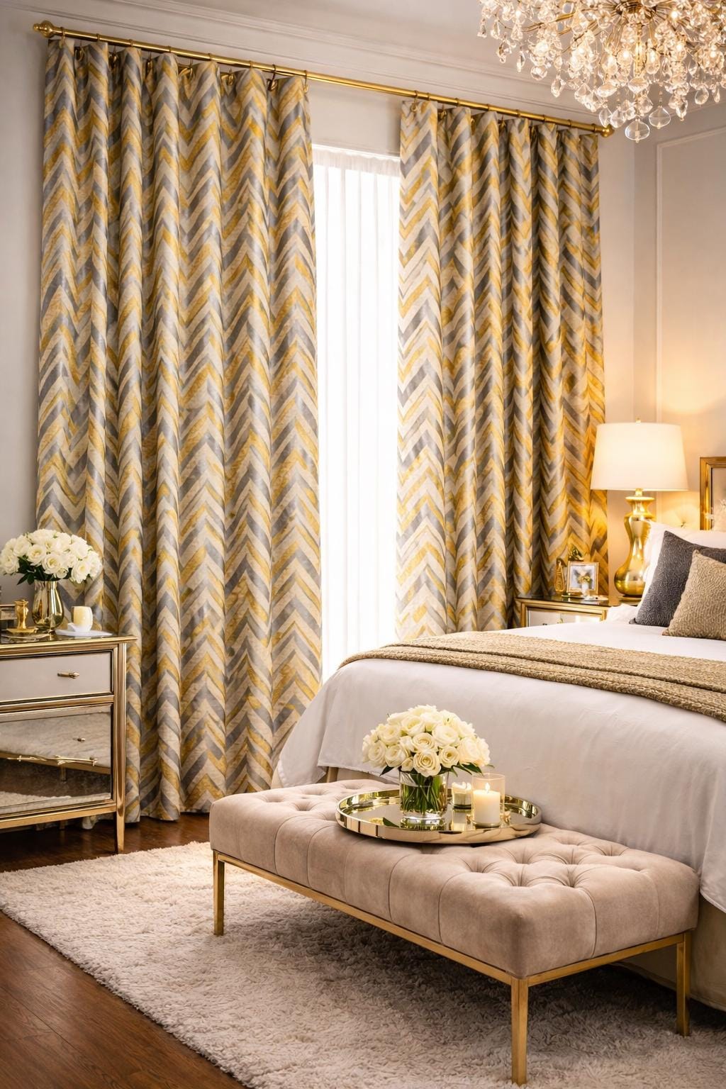 Geometric Art Deco Drapery Curtains: Modern Extra Long Panels