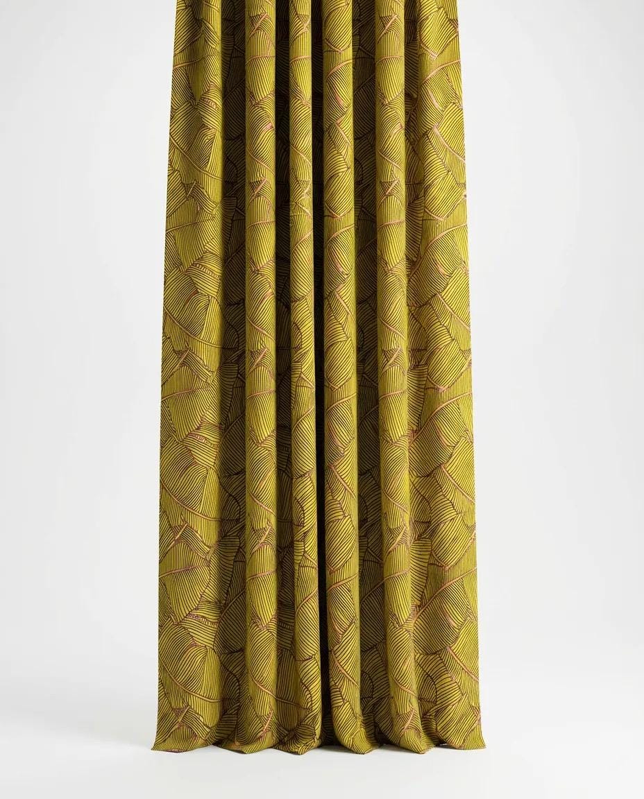 Geometric Leaf Drapery Curtains: Art Deco Curtain Panel Pair